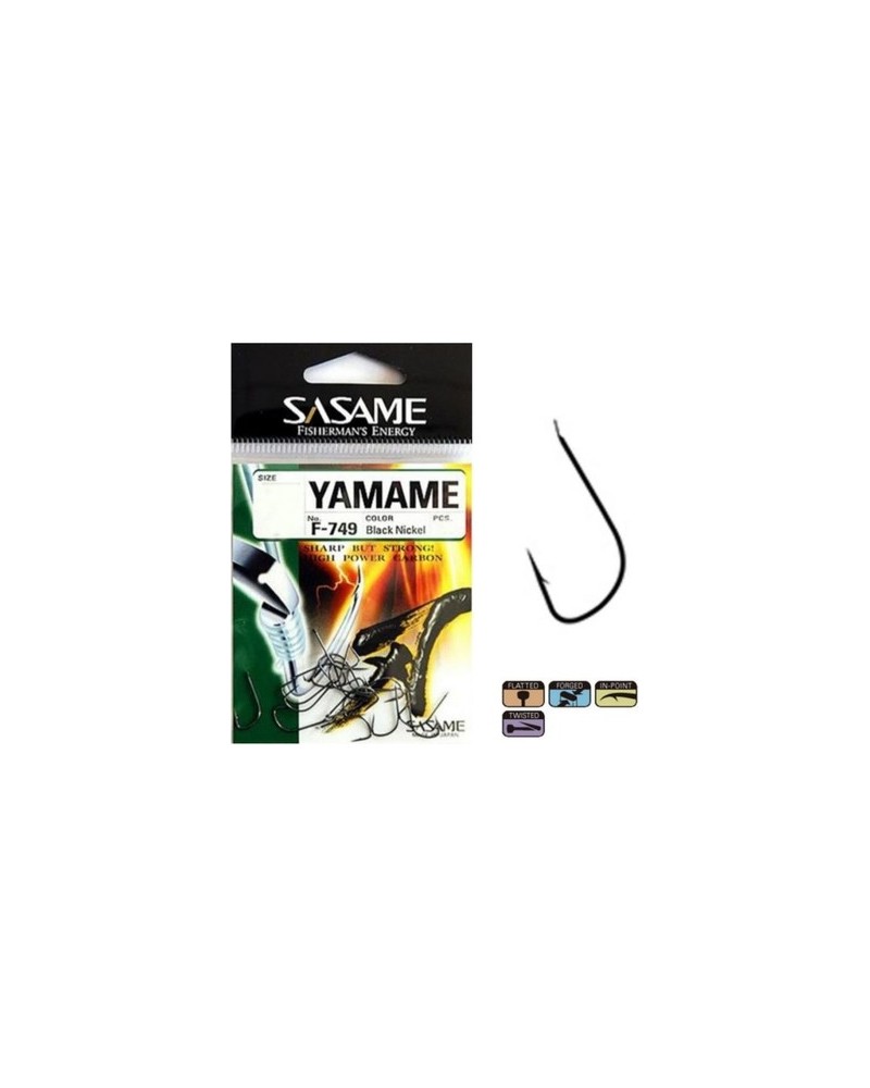 Anzuelo Sasame Yamame F-749, es un anzuelo de para recta y amplia abertura, que destaca por ser muy fino y ligero, lo que lo hace ideal para la captura de especies de pequeño tamaño, ya que al ser tan fino y afilado tiene un gran poder de penetración y al mas mínimo toque los peces quedaran enganchados, uno de los anzuelos mas usados en competición, sobretodo en circunstancias de poca cantidad de peces y aguas muy tranquilas y cristalinas.