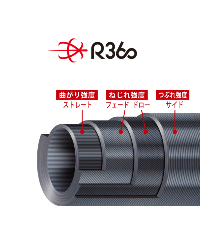 Al disponer las fibras de carbono en direcciones "recta (vertical)", "desvanecida (diagonal derecha)", "tirada (diagonal izquierda)" y "lateral (horizontal)", hemos creado un blank ultraligero que combina potencia y tensión. A diferencia del refuerzo convencional de cinta de carbono en la superficie del blank, este está construido con láminas de carbono multiaxiales. Esta es la estructura definitiva para un blank que soporta fuerzas en todas las direcciones, con la disposición del carbono ajustada según la función de la sección del blank.