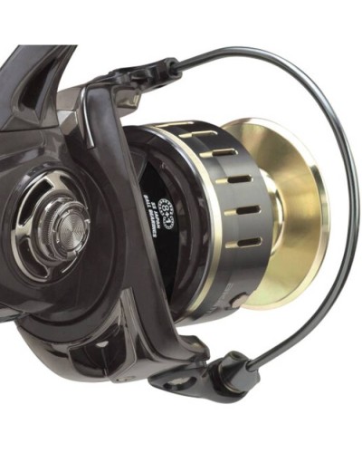 Carrete diseñado tanto para spinning como para jigging ligero, cuerpo y rotor de carbono. Nuevo mecanismo estabilizador que asegura una gran fluidez de rotación en acción de pesca y en el combate. Equipado con 9 rodamientos de acero inoxidable sellados. Doble bobina de aluminio forjado en frío. Manivela de aluminio de fricción a rosca y pomo de ergonómico de combate. Freno estanco multidisco de carbono y acero inoxidable. Bolsa portacarretes de neopreno incluida.