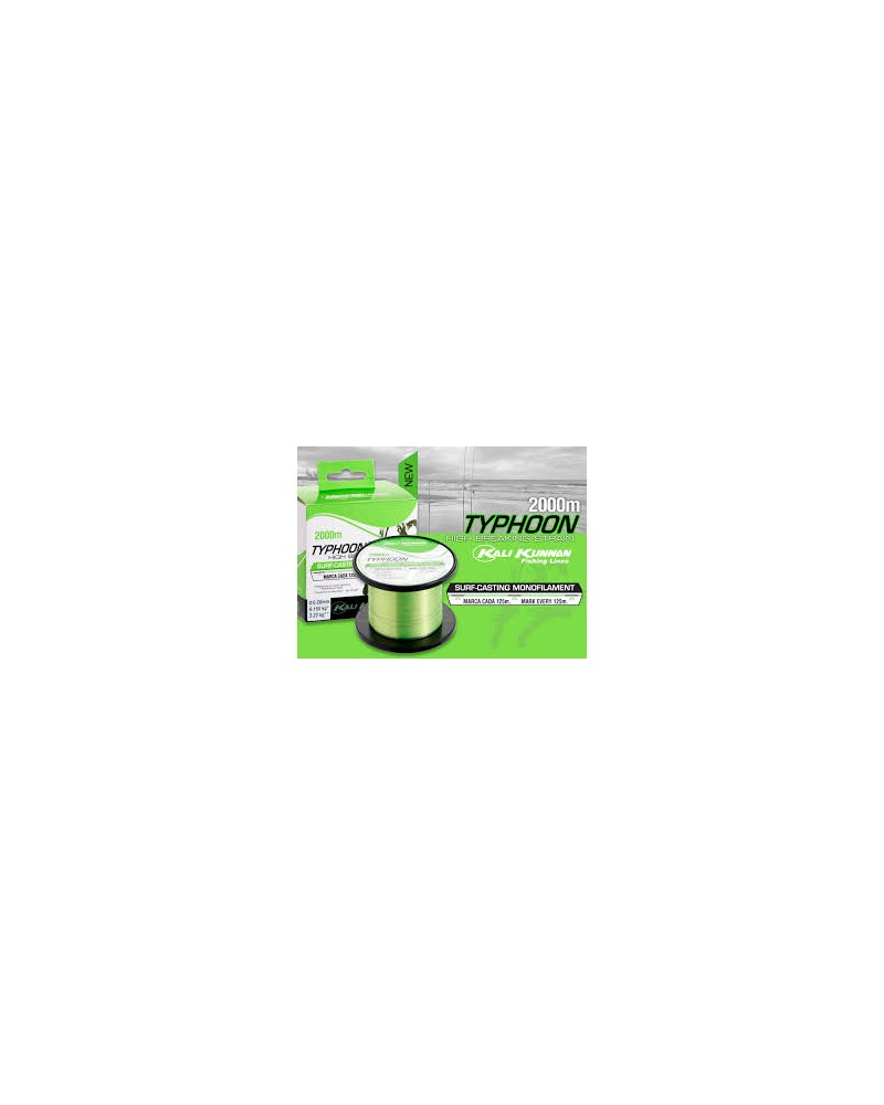 Nylon surfcasting Kali Kunnan Typhoon con una increíble resistencia a la rotura y a la abrasión. Una de las líneas de surfcasting más vendidas. Increíble ratio diámetro-resistencia. Especialmente diseñada para conseguir grandes lances pesca surf casting. Tiene una marca cada 125 MT. Bobinas de 2000 MT.