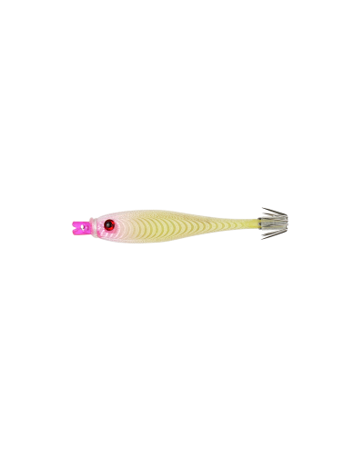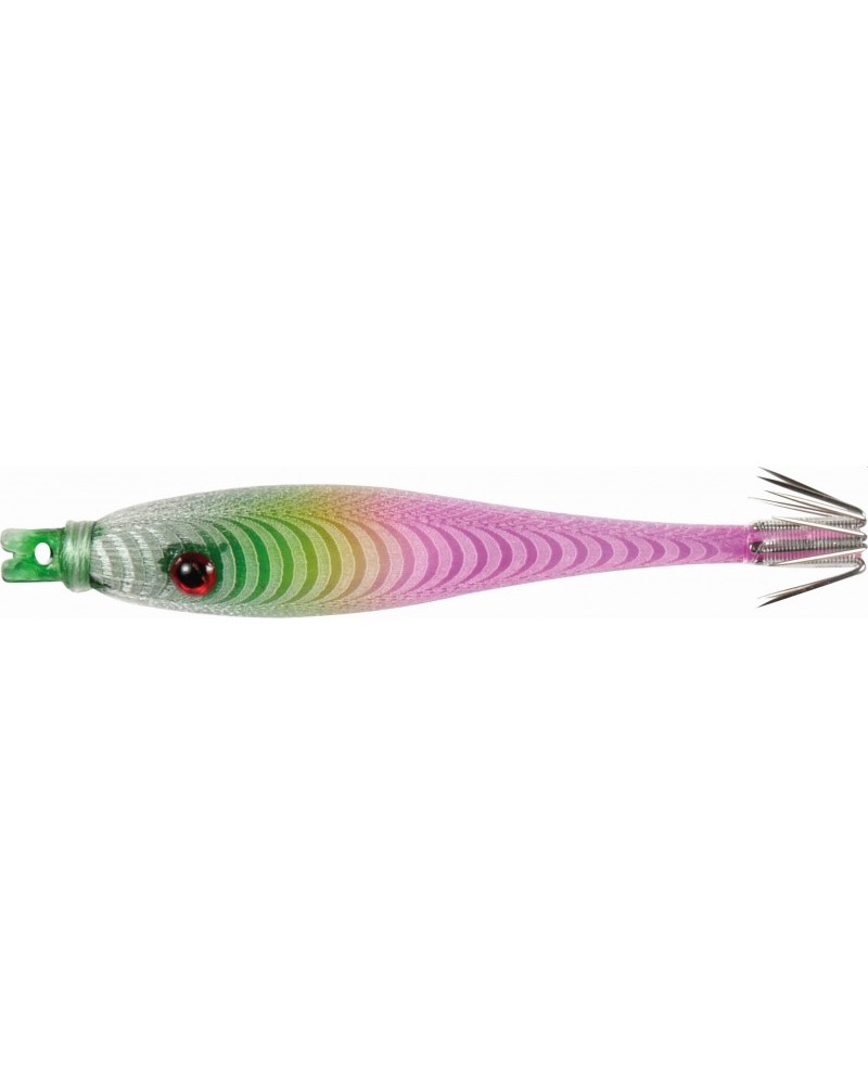 | Fantástico señuelo para la pesca del calamar, especialmente mediante la técnica "Tataki", con cuerpo de plástico duro transparente, recubierto de tela fina y sedosa simulando escamas. Dispone de ojos 3D y está dotado de una corona simple de acero inoxidable muy afilada.70mm | 1 |