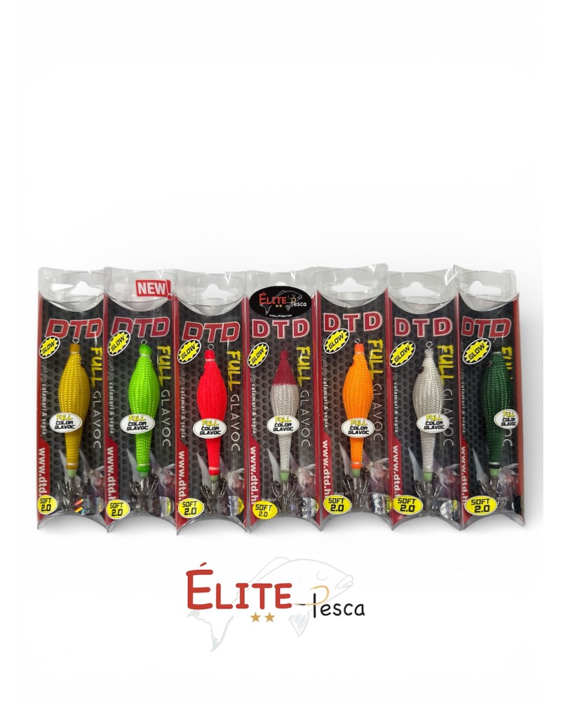 La Jibionera Full Flash Glavoc 2.5Soft de DTD se presenta para la captura de calamares en tandem. Fabricadas con cuerpo de silicona, y armada con anzuelos inox, DTD nos presenta la Jibionera Full Flash Glavoc 2.0 Soft en colores flúor, cuerpo fluorescente ( Glow), excelente equilibrio en el agua, cuerpo simulando escamas, fabricadas con tejido muy suave de fina textura, y giratorio de acero inoxidable.