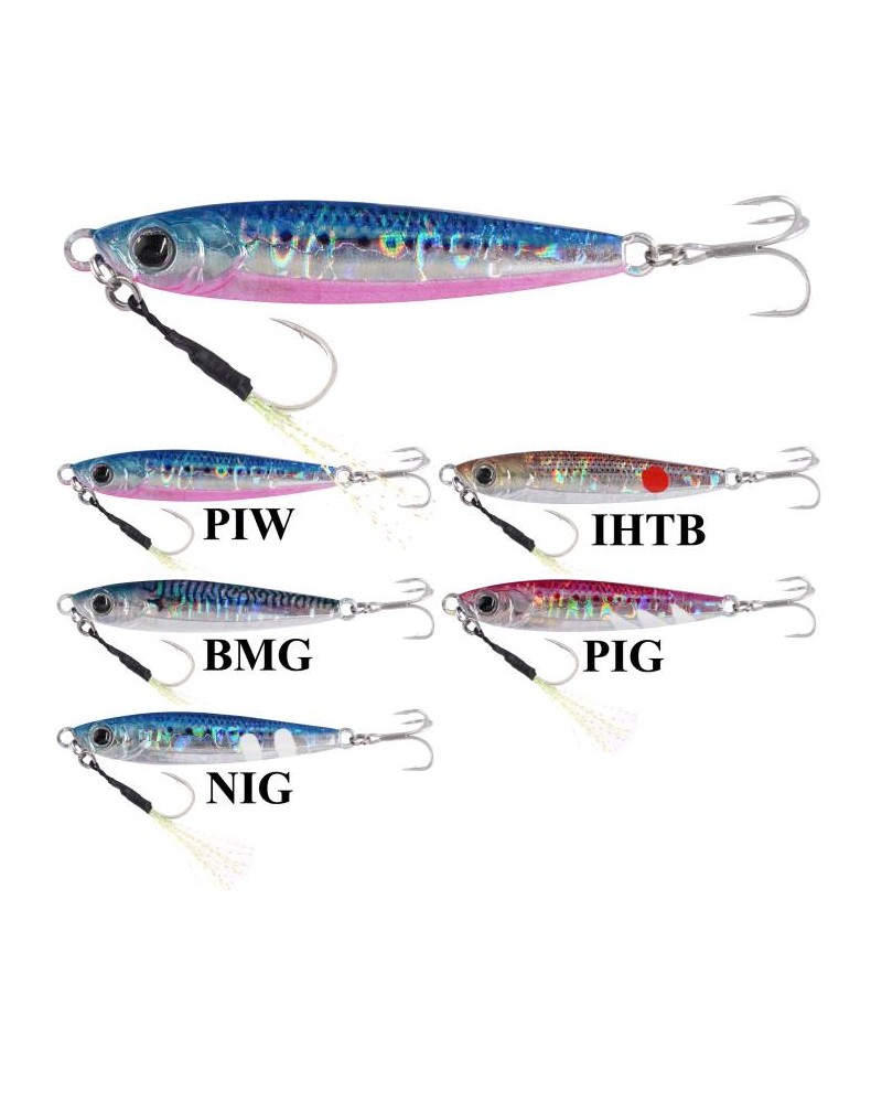 Los jigs de tungsteno Hart Bony presentan una acción errática, natación en caída, sin enredos de líneas, realismo, forma y tamaño compactos: BONY+TUNGSTENO. La evolución de nuestro cebo de jig-casting estrella hacia la silueta compacta que le da el peso específico del tungsteno. Acabados realistas hiper-atractivos en un cuerpo asimétrico que incorpora los elementos de una cuchara para generar la acción viva de un pez pasto. El cuerpo asimétrico de izquierda a derecha genera un aleteo vivaz durante la recuperación y también durante la caída, lo que unido a sus detalles en glow, atraen intensamente a nuestras presas. La forma compacta que facilita el tungsteno para un peso específico superior, nos dará una buena distancia de vuelo, y obligará a nuestros objetivos a usar la boca incluso en situaciones de baja actividad. Montados con assist delantero y triple trasero de alta calidad BKK.