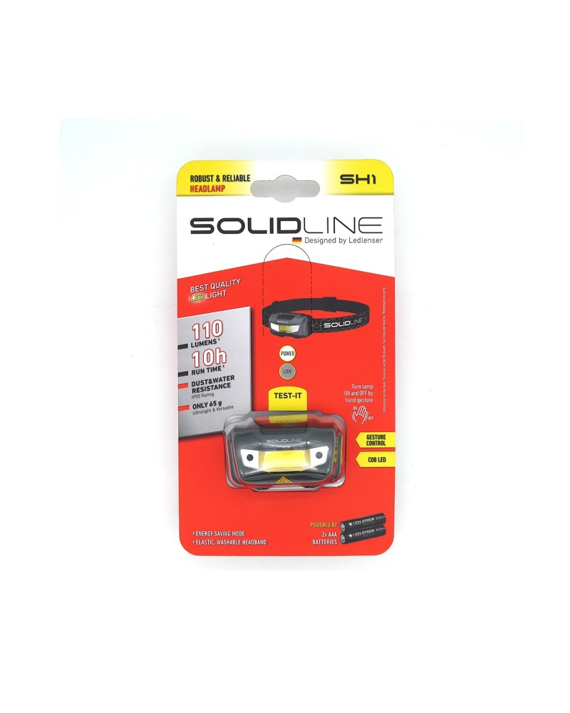 La LINTERNA FRONTAL LEDLENSER SH1 SOLID LINE, es muy fácil de usar teniendo un sensor, mediante el cual al pasar por delante la mano, podemos apagar o encender la linterna. Posee dos niveles de intensidad y se alimenta mediante dos pilas AAA. Su cabezal es giratorio y así podremos orientar la dirección del foco de luz. Posee una potencia lumínica de 110 lumens durante 2 horas y un modo económico con 15 lumens de potencia durante 10 horas.