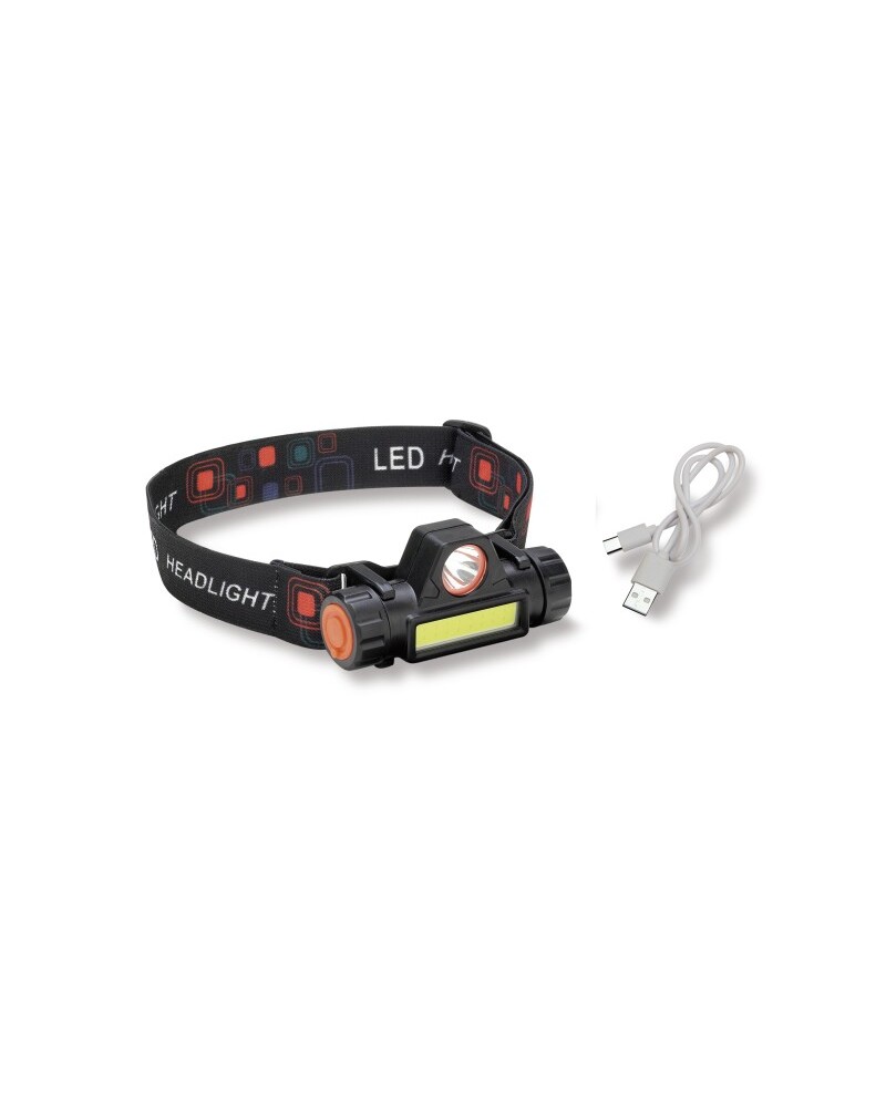 Linterna Recargable con batería de litio de 1200 mAh equipada con 3W LED de enfoque rápido y un panel led de enfoque indirecto. Resistente al agua, con un radio de giro de 60º. Foco de 100 metros de alcance con 120 Lúmenes. Incorpora además un pequeño imán en el extremo izquierdo para poder ser extraída de la cinta.
